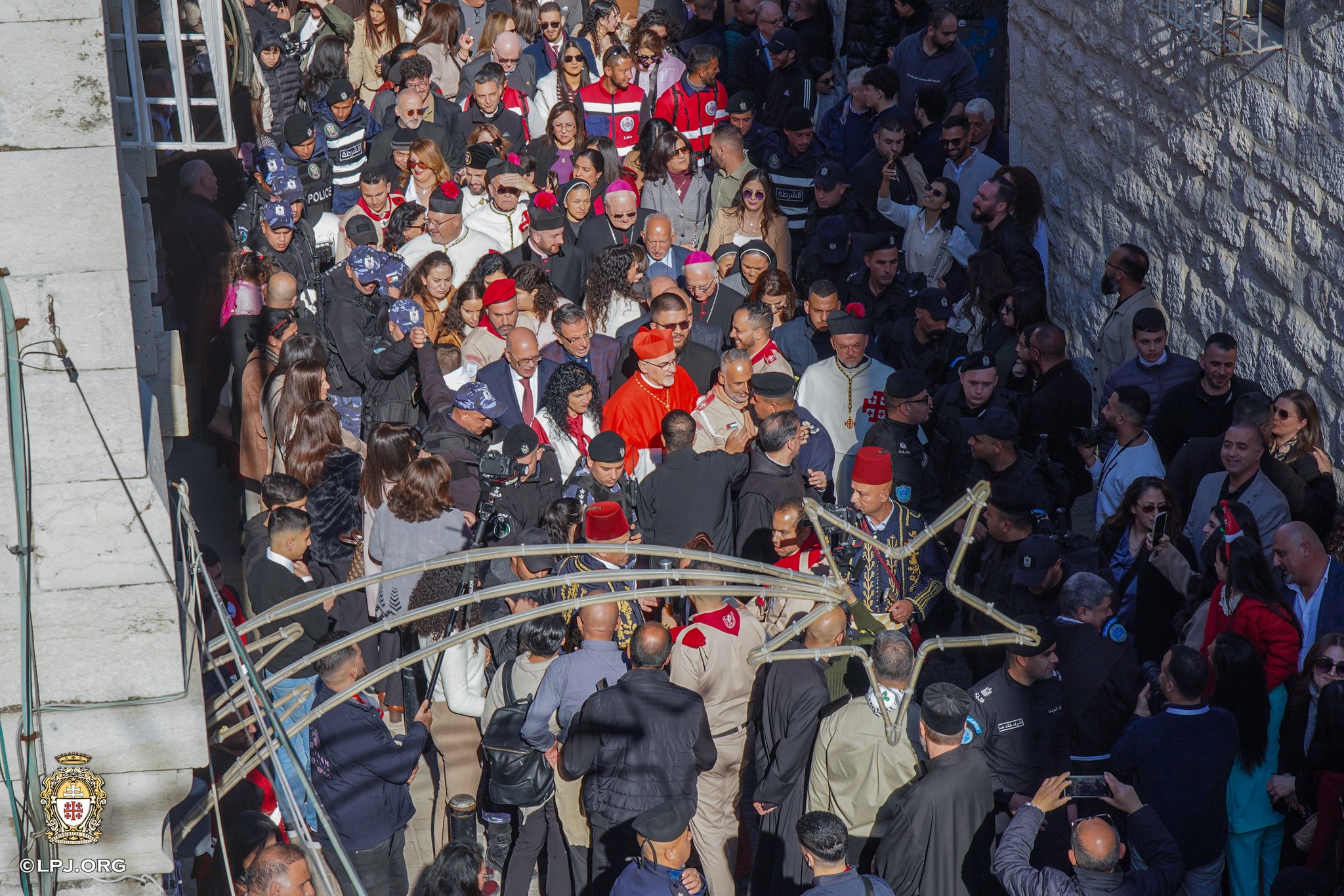 The narrow streets of Bethlehem’s Old City once again resounded with Christmas hymns as more than twenty scout groups marched before His Beatitude Cardinal Pierbattista Pizzaballa, Latin Patriarch of Jerusalem, and the accompanying delegation of religious and civil authorities, as the Patriarch made his Solemn Entry into Bethlehem on December 24, 2025, announcing the beginning of the Christmas celebrations.
