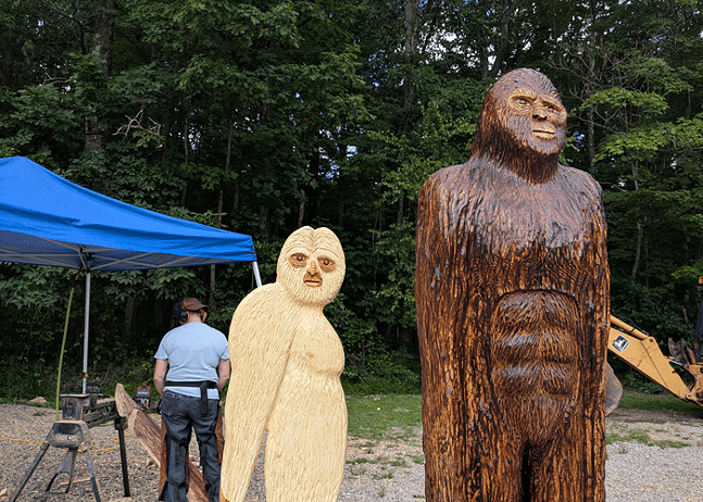 Wood sculptures at the at the Bigfoot Camping Adventure in Farmington, Pa. Credit: CP Photo: Amanda Waltz