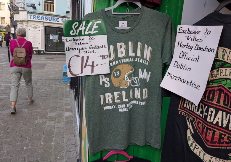 A Dublin NFL game T-shirt at a shop in Galway Credit: Amanda Waltz