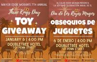 Reading Mayor Eddie Morán will host his seventh annual Three Kings Day celebration and toy giveaway at 4 p.m. on Tuesday at the DoubleTree Hotel, which is located at 701 Penn St. in center city.