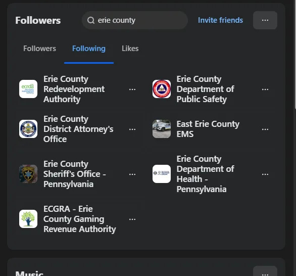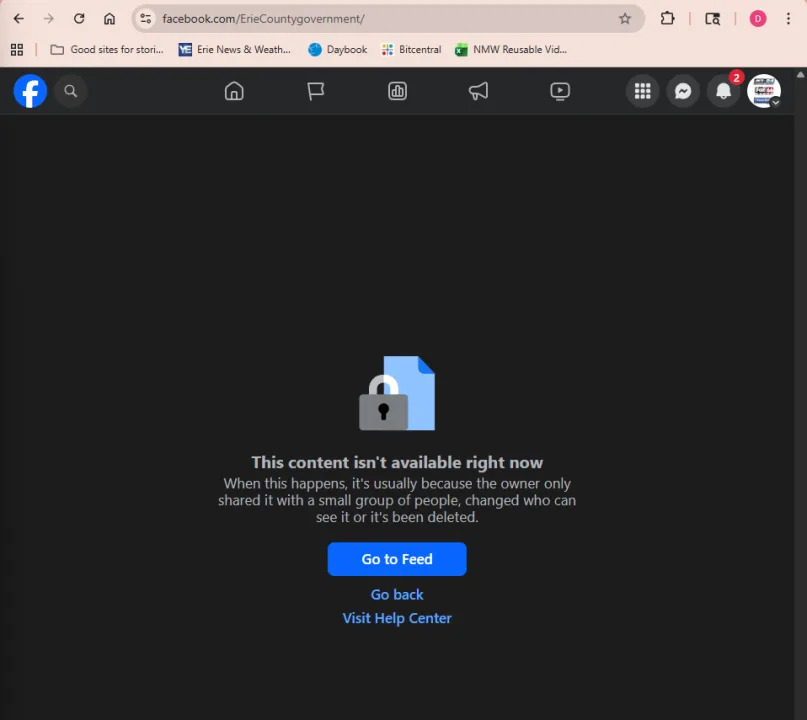 As of January 1, the official Erie County Government Facebook page, which has thousands of followers, is unavailable, either through search or direct link.