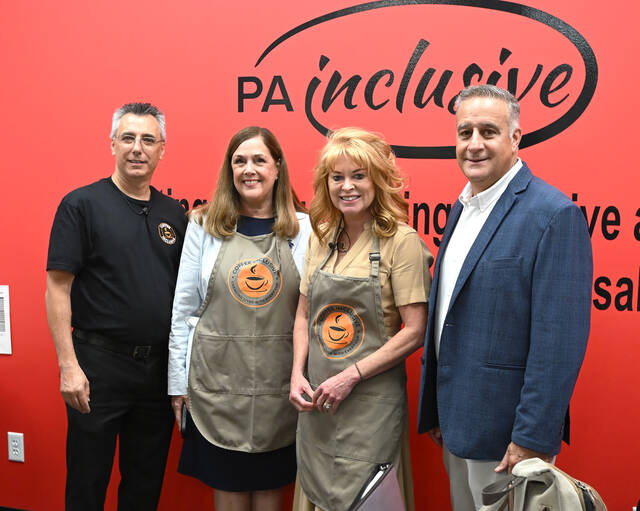 PA State Treasurer Stacy Garrity along with PA State Sen. Lisa Baker stopped by Coffee Inclusive to mark Nationa ABLE Savings Day, in August. Left to right: Frank Bartoli, PA Inclusive president & CEO, Baker, Garrity, City of Pittston Mayor Michael Lombardo.