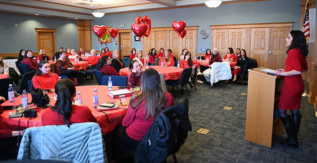 Dr. Jennifer Ann Nesfeder, of Geisinger Cardiology, far right, was the featured speaker of the Greater Pittston Chamber of Commerce’s Lunch & Learn presentation in February. Dr. Nesfeder spoke on the importance of hands-only CPR, women’s heart health, and prevention at the Pittston Memorial Library on Friday.