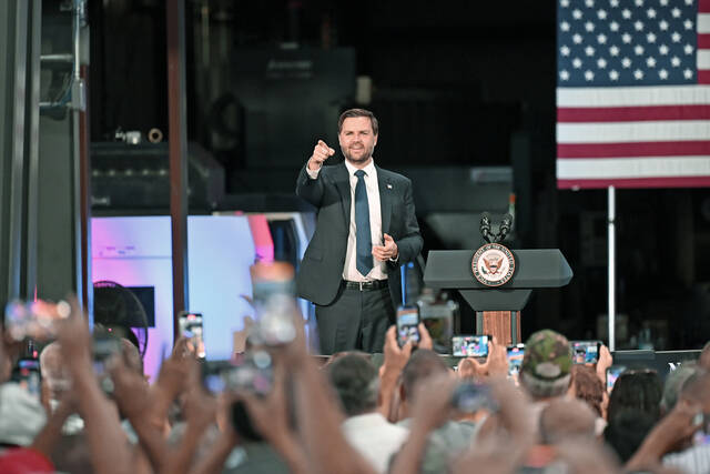 In July, cellphone cameras were out by the dozens as U.S. Vice President J.D. Vance entered the stage at Don’s Machine Shop, West Pittston.