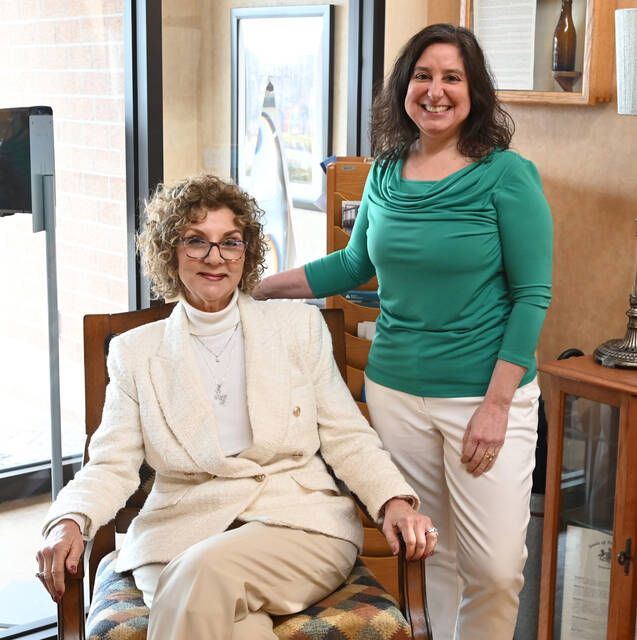 Rose Ferentino Grimes, seated, was selected the Greater Pittston Chamber of Commerce Women’s Network’s 2025 Distinguished Woman of the Year. Ferentino Grimes, seated next to Michelle Mikitish, Chamber president, was honored at the St. Patrick’s celebration dinner on Friday, March 28 at Fox Hill Country Club.
