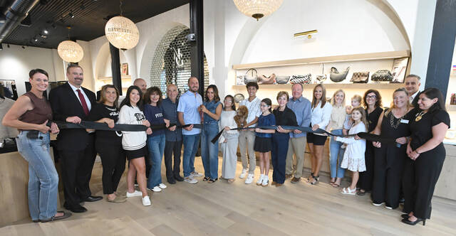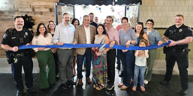 In April, Catherine Duffy, center with scissors, owner of 3 Sisters, held a ribbon-cutting ceremony alongside City of Pittston Mayor Michael Lombardo and other officials at the Waterfront Warehouse, 350 Kennedy Blvd., Pittston.
