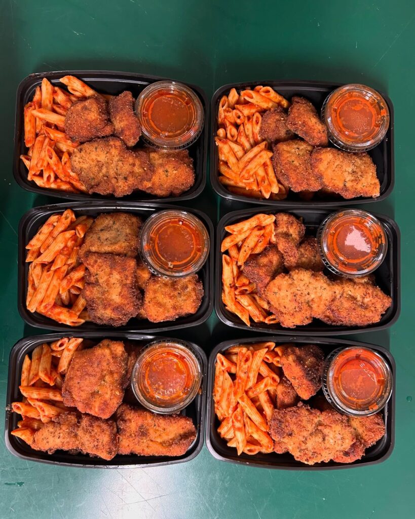 Recent meals include BBQ Cheeseburger Bowl, Jerk Chicken Mac & Cheese and General Tso’s Chicken. Selections change weekly.