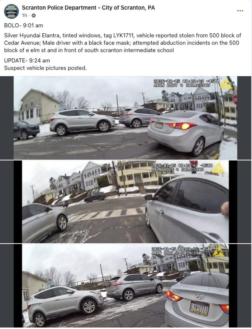 Scranton police are searching for a vehicle involved in attempted child abductions on Monday morning.