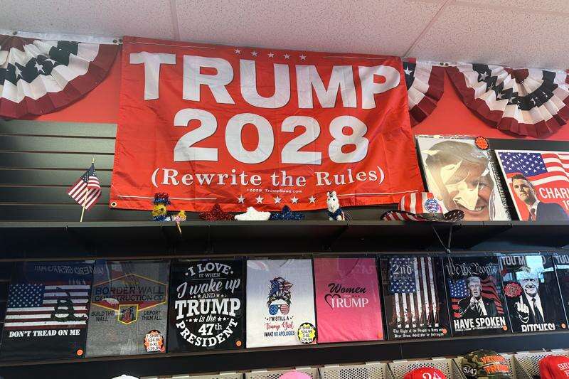 The store sells Trump 2028 gear despite the president being constitutionally prohibited from running in 2028. Trump has said it’s “too bad” he can’t run, though he’s also handed out Trump 2028 souvenirs at the White House.