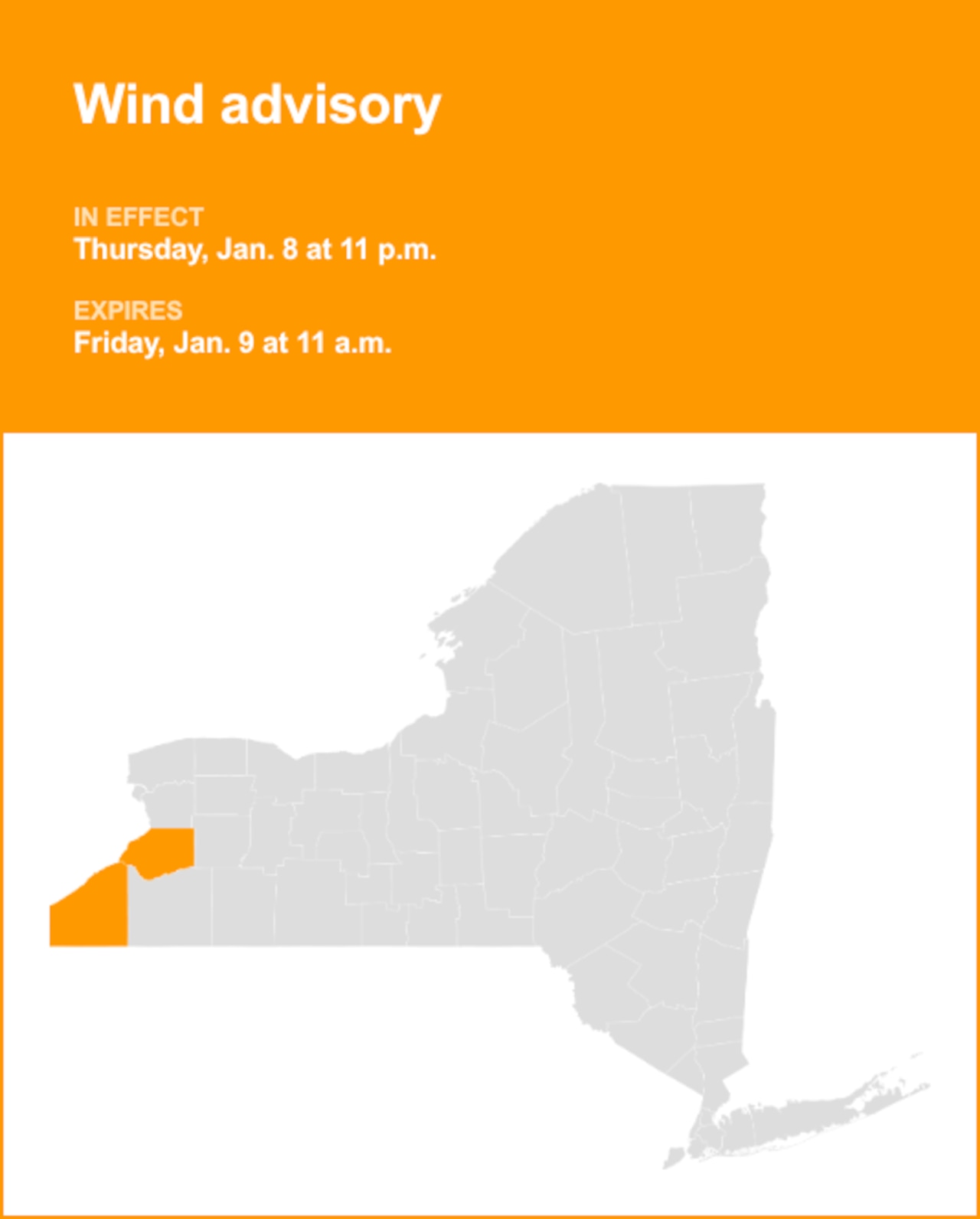 At 1:19 p.m. on Thursday, the National Weather Service released a wind advisory valid from 11 p.m. until Friday 11 a.m. for Southern Erie and Chautauqua County.