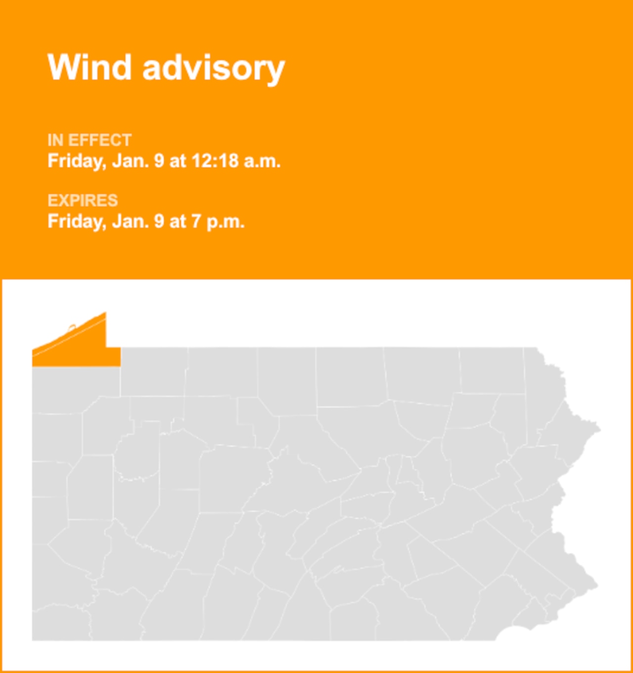 The National Weather Service issued an updated wind advisory at 12:18 a.m. on Friday in effect until 7 p.m. for Northern Erie and Southern Erie.