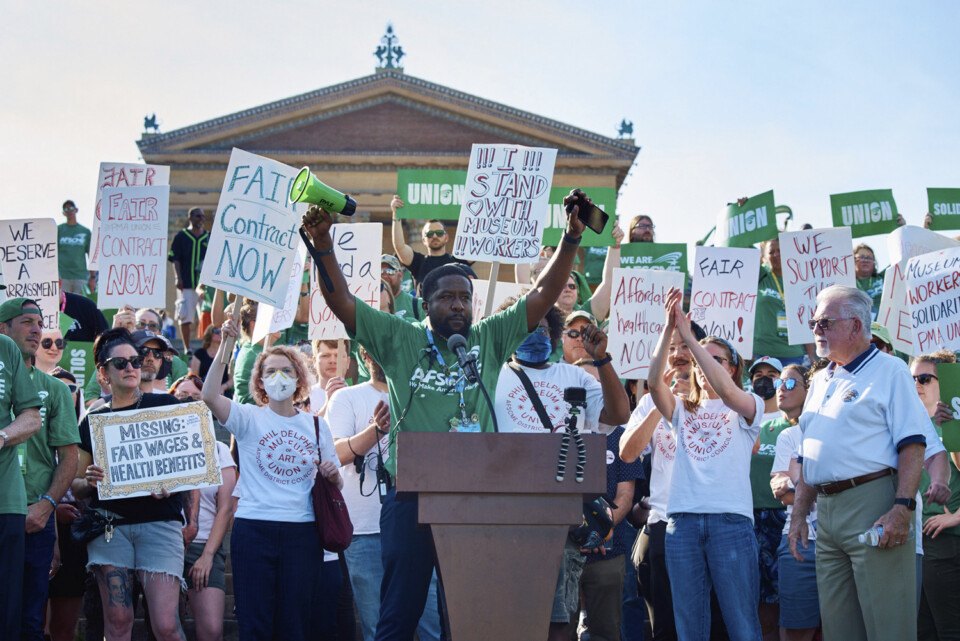 A union rally at the Philadelphia Art Museum in July of 2022 / Photograph by Tim Tiebout