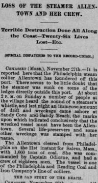Newspaper article about SS Allentown’s demise; Sacramento Daily Union 28 November 1888 — California Digital Newspaper Collection