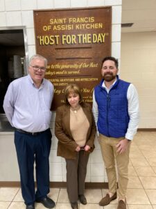 Saint Francis of Assisi Kitchen has launched its 2026 Host-for-a-Day campaign. Pictured from left are: Kitchen Executive Director Rob Williams, Advisory Board President Donna Barbetti, and Advisory Board member and Campaign Chair Michael J. Cummings.