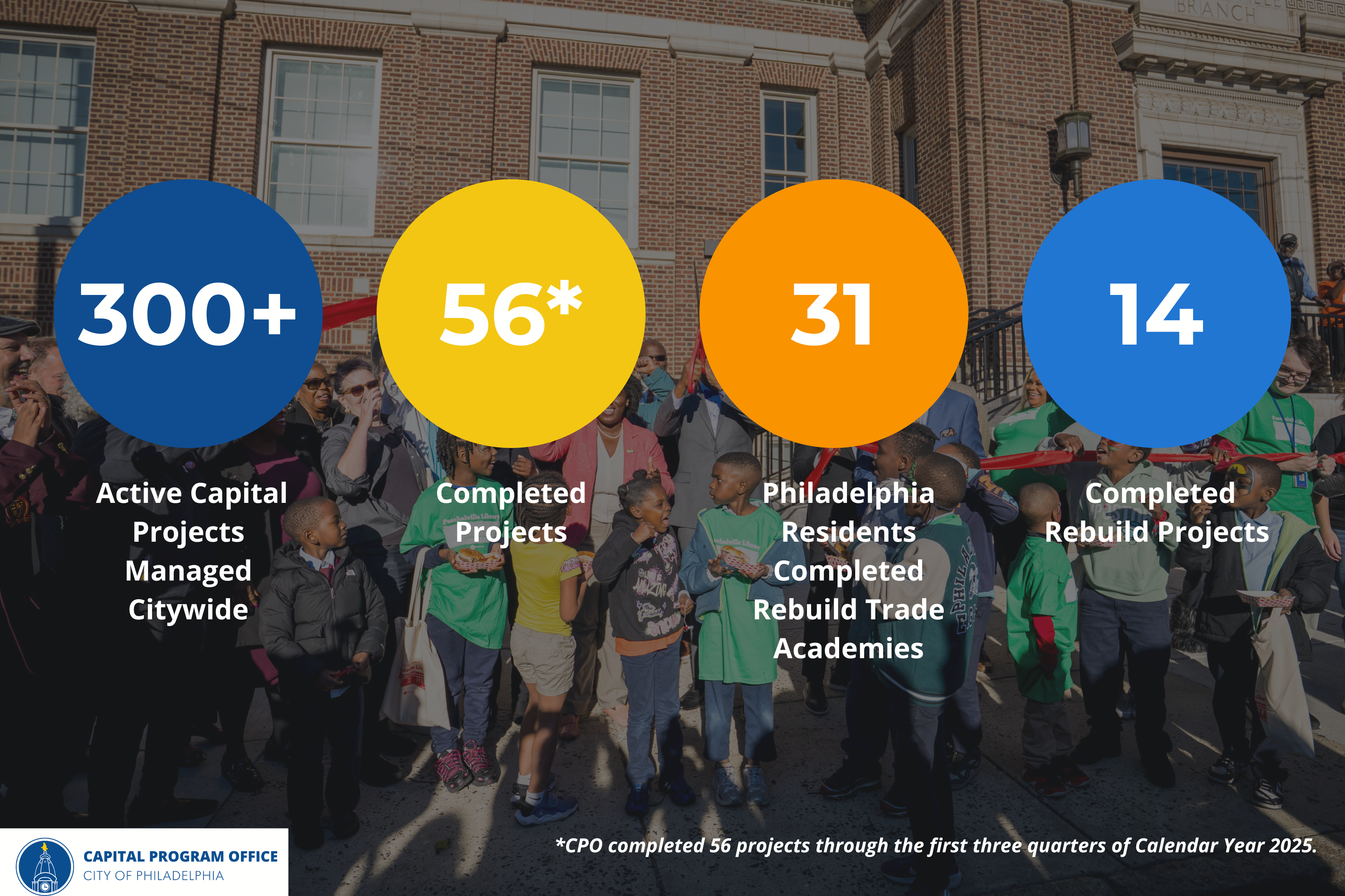 CPO managed more than 300 capital improvement projects in various stages of planning, design, and construction across Philadelphia, supporting essential City services and public spaces.