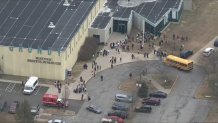 SkyForce10 was over the scene as students and staff were relocated to the Grundy Ice Skating Rink across the street from the school.