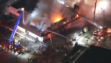 SkyForce10 was over the scene of Bella Vista Restaurant along Whitaker and Hunting Park Avenues on Friday, January 16, 2026, as the establishment was consumed by flames.