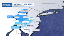 Grassy and elevated areas could see a dusting of snow near and around the city while the western suburbs of Pennsylvania as well as Berks County and the Lehigh Valley could see one to two inches of snow.