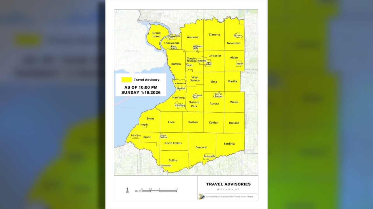 Erie County and City of Buffalo leaders issued a countywide travel advisory as of 10 p.m. Sunday.