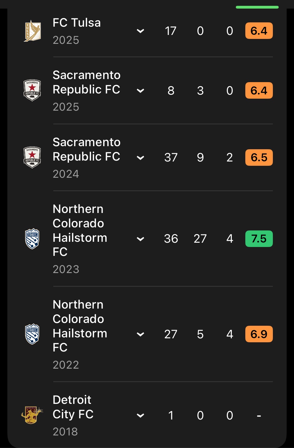 Amann may have scored a ton of goals in USL League One, then had a strong start with Sacramento under Head Coach Mark Briggs, as he was second on the squad with nine tallies in 2024. A coaching change at Sacramento, with former Rowdies gaffer Neill Collins taking over in 2025, it looked like Amann got put on the short end of the stick as far as playing time, relegated to spot minutes in Sacramento, then turned out to be an insurance back-up for the Western Conference champion Tulsa squad. Amann started just three of 25 matches and played only a total of 389 minutes last season, though in that previous season in Sacramento, he started 17 of 35 matches, as a key piece of the rotation for one of the Western Conference’s top teams, with over 1,500 minutes played