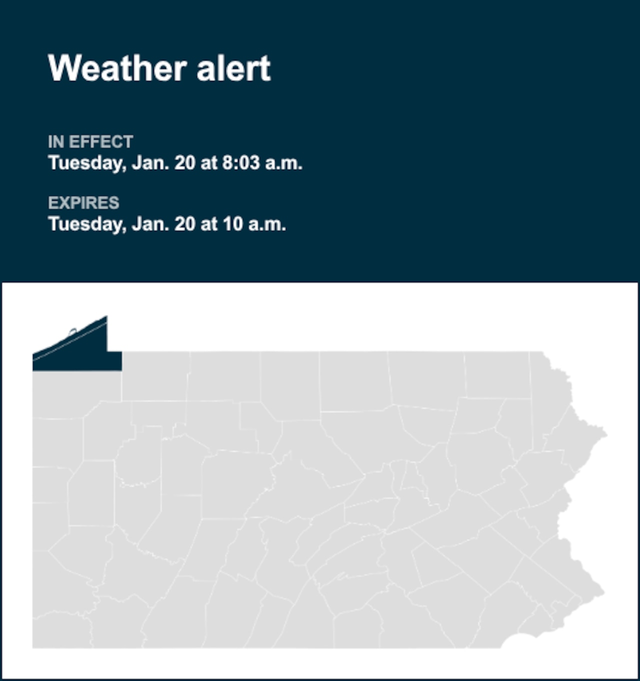The National Weather Service released an updated special weather statement at 8:03 a.m. on Tuesday until 10 a.m. for Northern Erie and Southern Erie.