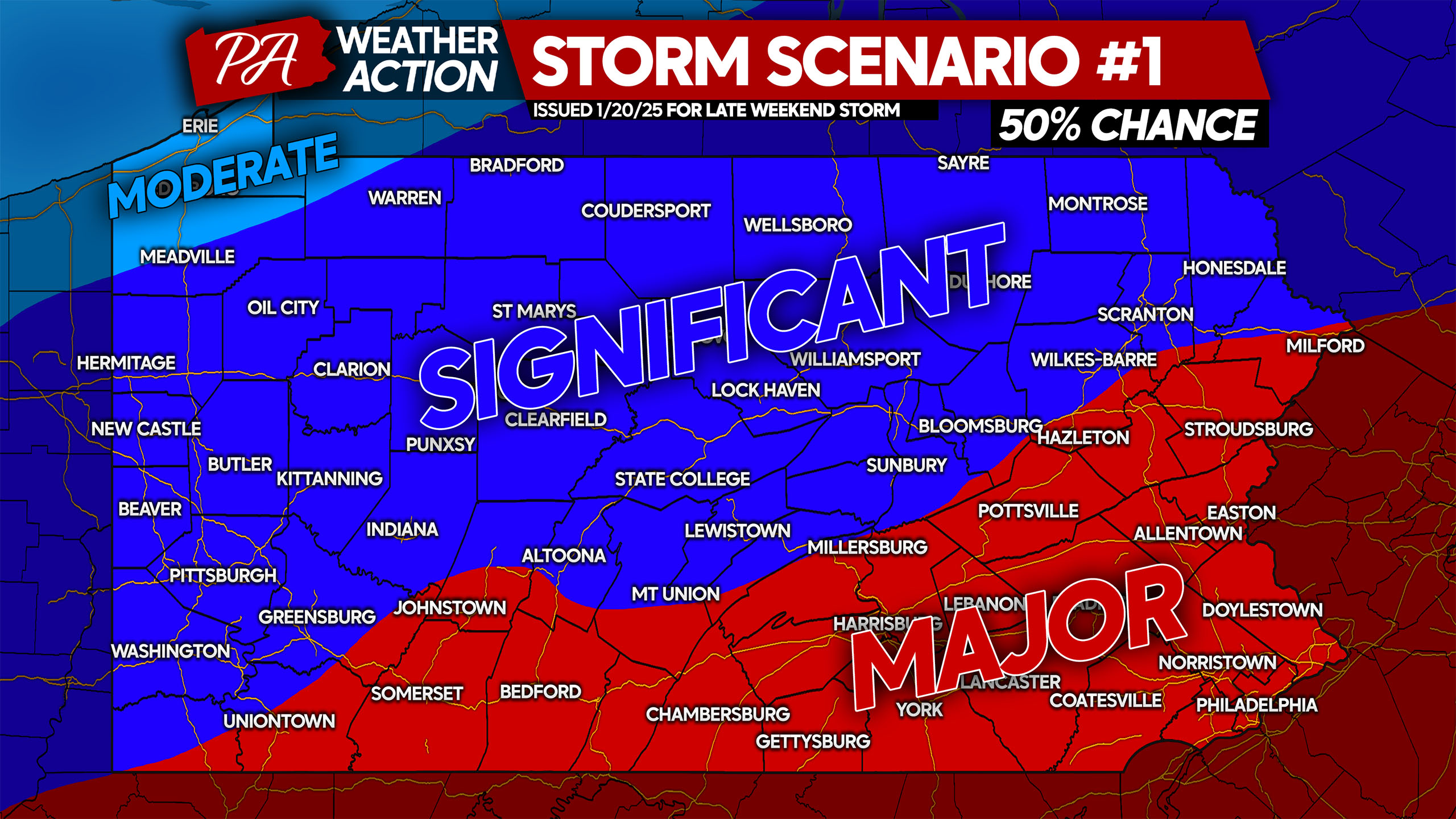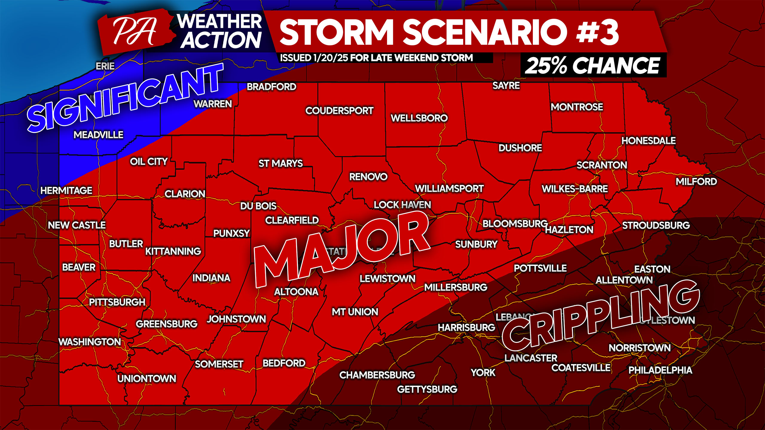 All in all, we are very confident Pennsylvania will feel at least significant impacts from this storm. Being five days out, it’s too early to determine exact snowfall ranges.