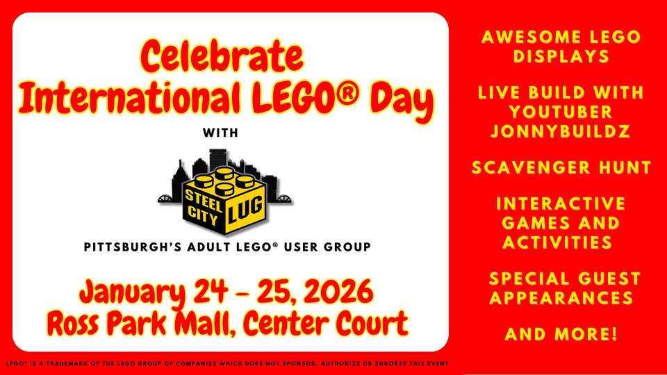 Saturday, Jan. 24 and Sunday, Jan. 25: Celebrate International LEGO Day at Ross Park Mall, 11 a.m. to 6 p.m.