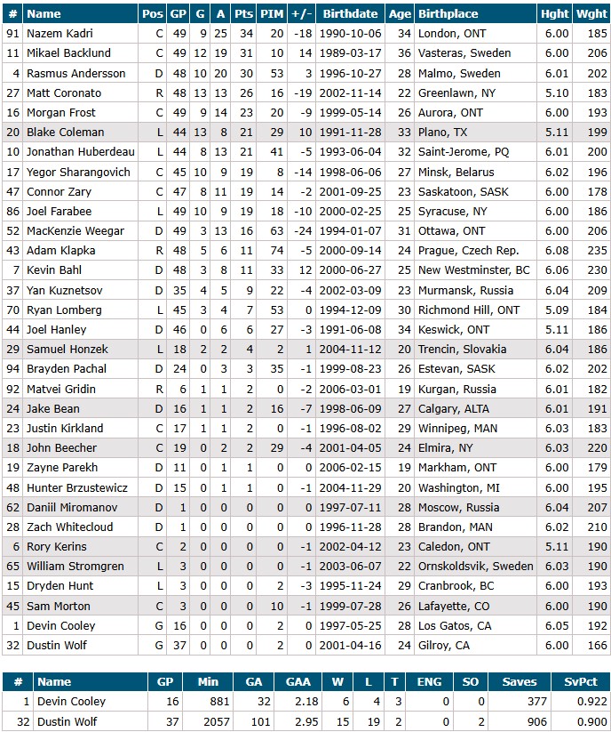 Yegor Sharangovich – Mikael Backlund – Matt Coronato