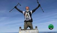 John “Johnny Appleseed” Mosso completes his 210-day hike of the Appalachian Trail at Mount Katahdin, Maine
