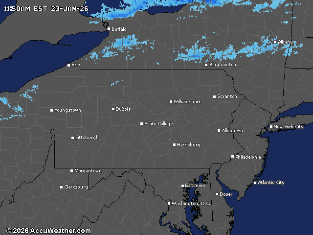 At Lehigh Valley International Airport outside Allentown, the weather service’s hourly forecast has the snow starting shortly after midnight Saturday, continuing throughout Sunday into Monday morning and ending by about 7 p.m. Monday.