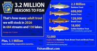 The release says PFBC will be welcoming volunteers to help distribute approximately 3.2 million hatchery-raised adult trout to hundreds of waterways statewide throughout the 2026 season. Volunteers are asked to keep the safety of PFBC staff and other volunteers in mind and obey traffic laws while following stocking vehicles. Individuals or small groups of volunteers (1-4 people) do not need to register to help stock trout, but larger groups should coordinate stocking plans in advance by contacting their regional PFBC law enforcement office to ensure they can be accommodated.