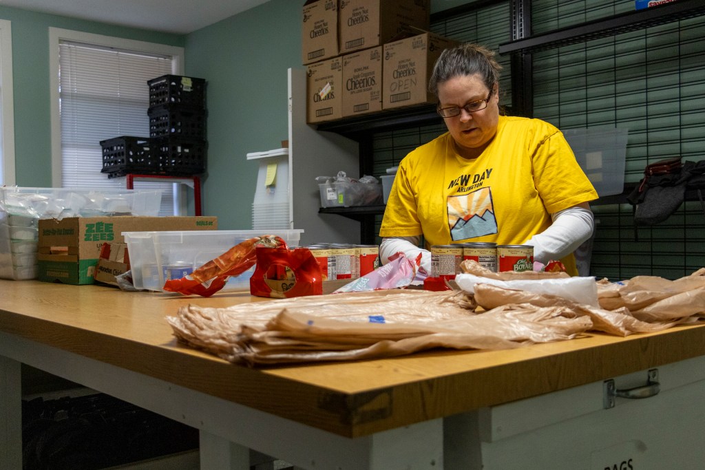 “This is what I know to be something that is important and helping out where it’s needed, right?” Thompson said as she turned off the lights in the food storage room of the church. “I could be doing lots of other things, but that might not be where it really is needed, whereas this, I know there’s a purpose, there’s a need. It’s consistent in that need, and each little bag makes a difference.”