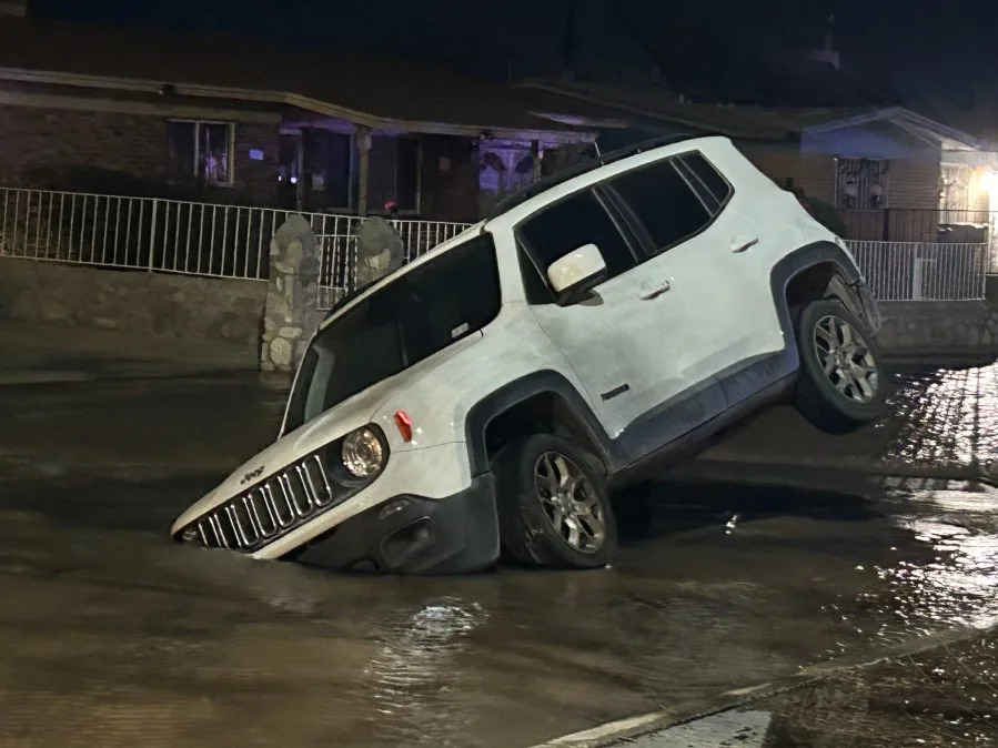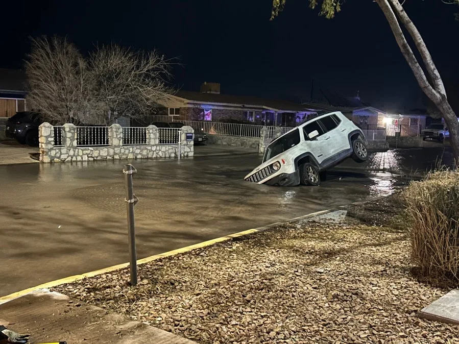 EL PASO, Texas (KTSM) — A car has fallen into a sinkhole Wednesday, Dec, 24 in East El Paso.