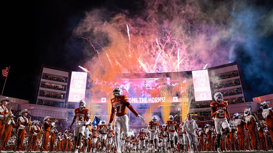 AUSTIN, TEXAS – NOVEMBER 28: The Texas Football team running out of the tunnel during the Texas vs Texas A&M football game on November 28, 2025 at Darrell K Royal Texas Memorial Stadium in Austin, Texas. (Photo by The University of Texas Athl