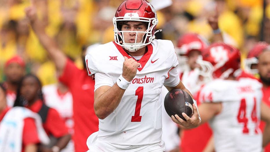 WACO, TEXAS – NOVEMBER 29: Conner Weigman #1 of the Houston Cougars runs with the ball during the second half against the Baylor Bears at McLane Stadium on November 29, 2025 in Waco, Texas. (Photo by Sam Hodde/Getty Images)
