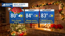 The warmest it has ever been on Christmas Day was in 2021. The high temperature reached 82 degrees. We’re expecting a high of 81 degrees with mostly sunny conditions.