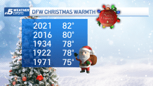 Christmas 2025 is on tap as one of the warmest in DFW weather history.