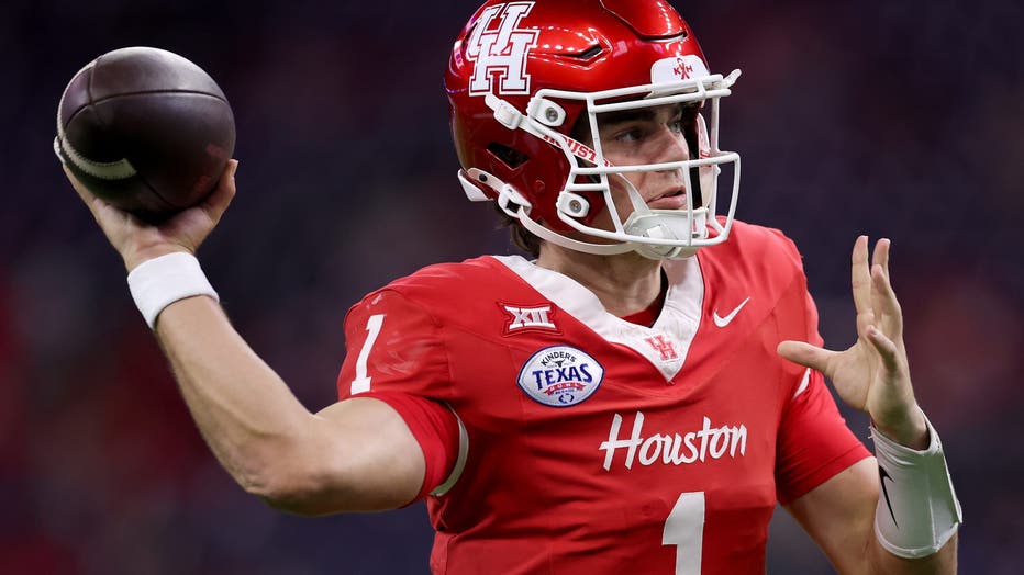 Conner Weigman #1 of the Houston Cougars warms up before the game against the Louisiana State Tigers during the Kinder’s Texas Bowl at NRG Stadium on December 27, 2025, in Houston, Texas. (Photo by Tim Warner/Getty Images)
