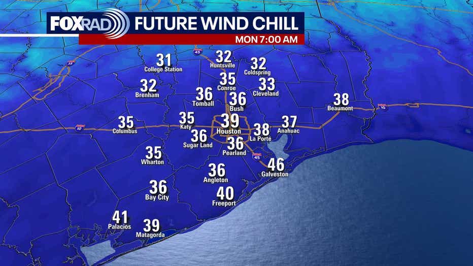 Temperatures by Tuesday and Wednesday morning will be near freezing for Houston and could dip below feezing for areas like Livingstone, Conroe and Huntsville.