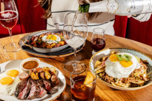 Sixty Vines is celebrating with four days of brunch, plus a New Year’s Eve dinner that includes a 6 oz filet and grilled shrimp in chimichurri butter sauce with a side of truffled vineyard fries and a Champagne toast.