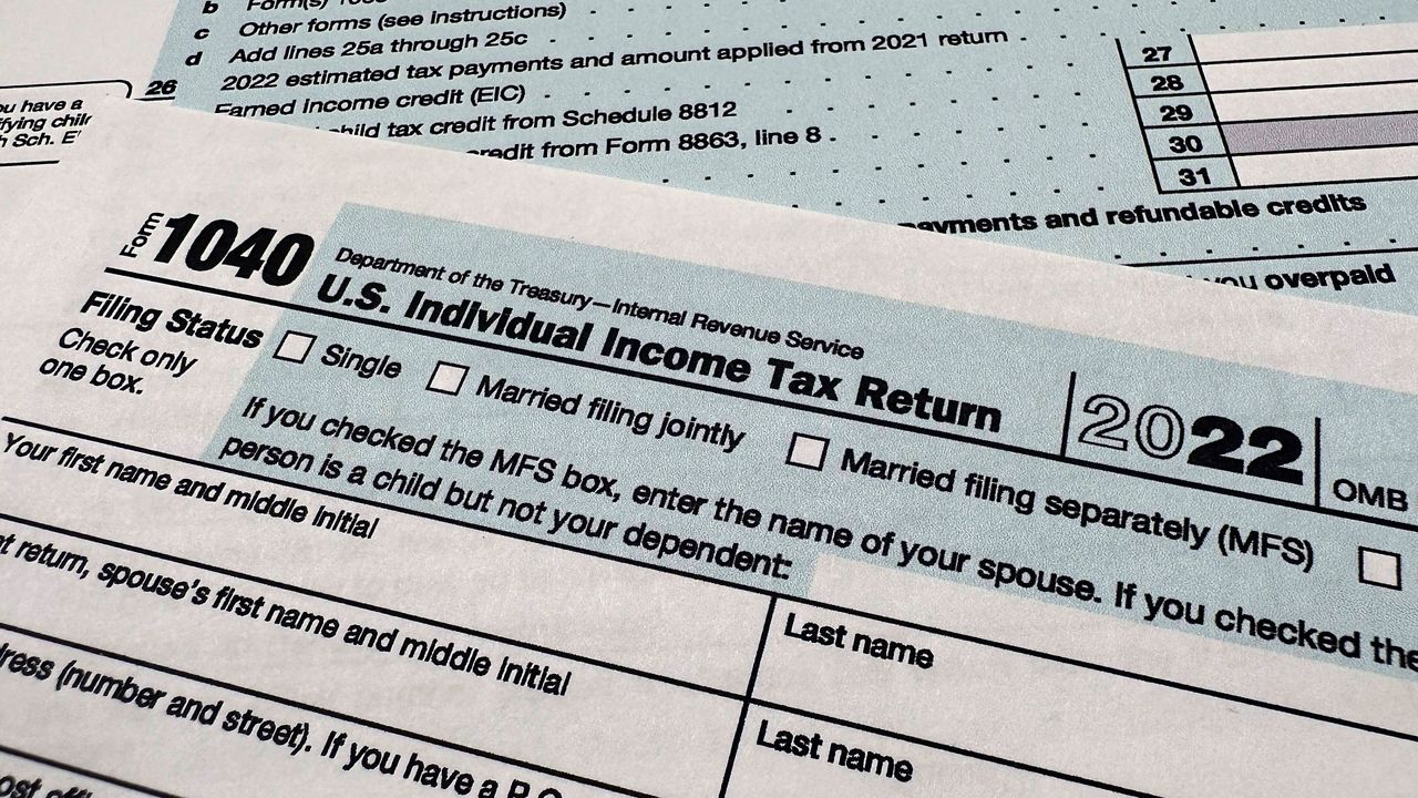 The Internal Revenue Service 1040 tax form for 2022 is seen on April 17, 2023. (AP Photo/Jon Elswick)