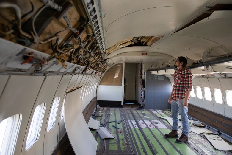 Ismael Lara, whose career is in education, has lots of ideas for upcycling the 1966 Boeing 727 he bought into a fun and educational attraction for local families, March 7, 2025. (Corrie Boudreaux/El Paso Matters)