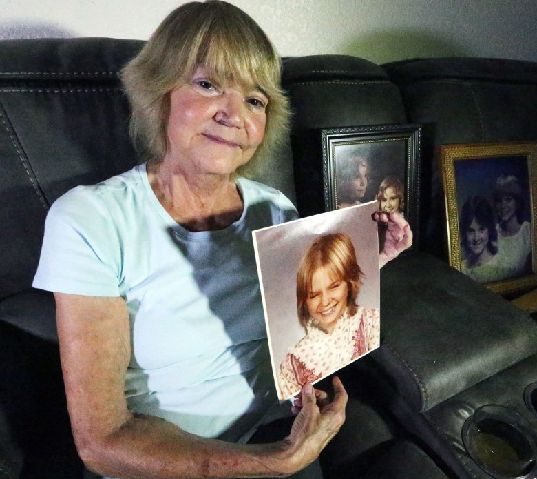 Marcia Fulton holds her favorite picture of a giggling Desiree Wheatley. The photo was taken in 2017, 30 years after 15-year-old Desi was slain in a serial killing spree. The other photos are of Desi and her older sister, Sundee. (Rudy Gutierrez/El Paso Times)