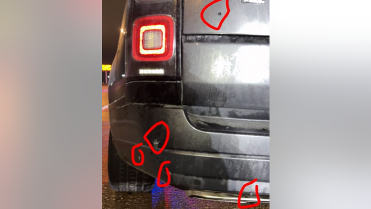 Gochneaur says the shots were fired at them somewhere between the Berry Street and Seminary Drive exits. He took photos of the damage after pulling over near a police officer south of the I-20/I-35 exchange.