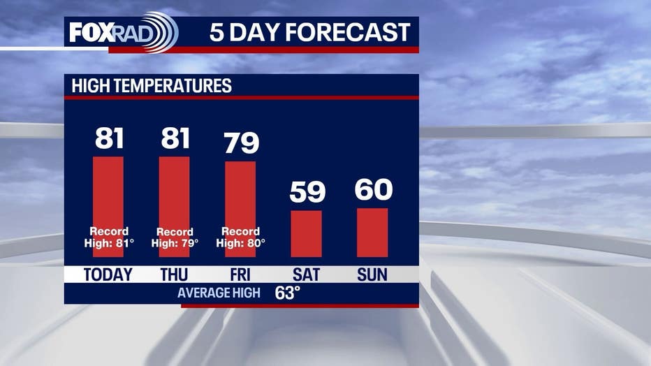 By late Thursday night into Friday, a more dynamic weather system moves in. Increasing moisture and lift from an area of low pressure will support showers and scattered thunderstorms, with a few strong storms possible. This will mark the most active weather of the week and the clear transition between record highs and chilly breezes.