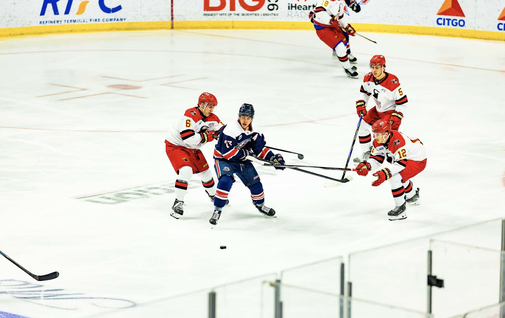 As the third period started and in the power play, IceRays Johnny Maruna scored his 10th goal of the season, giving Corpus Christi a 4-1 lead. Overcoming defensive struggles was the theme of the night as Wranglers forward Caden Hegarty scored his 6th goal of the season, cutting the IceRays lead to 4-2. While the bewildered IceRays fans watched in amazement, Amarillo‘s hot stick man Ty Izadi hit a “bar south,” making the score to 4-3.