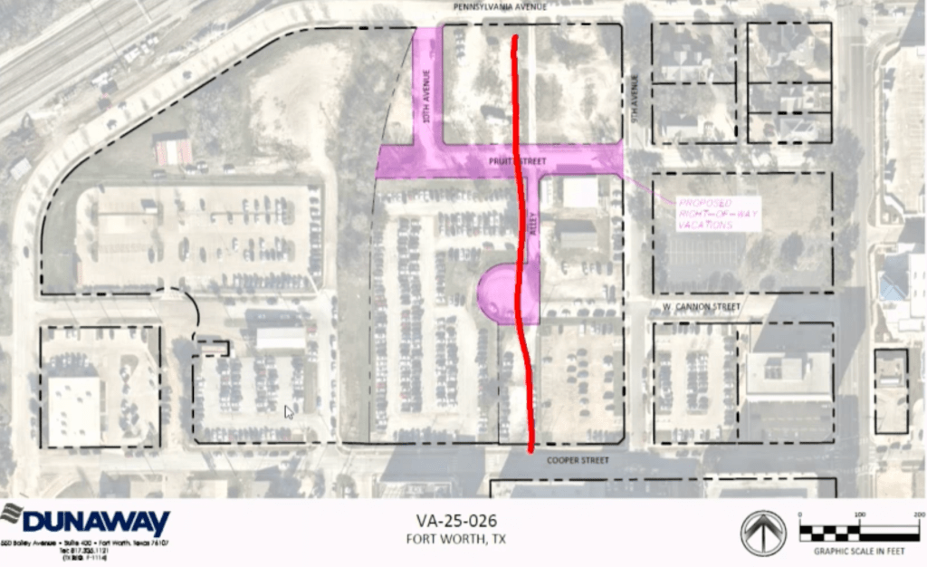 The commission voted unanimously to make the recommendation to the Fort Worth City Council. The resolution, if approved by the council, would vacate parts of 10th Avenue and Pruitt and West Cannon streets and an alley.