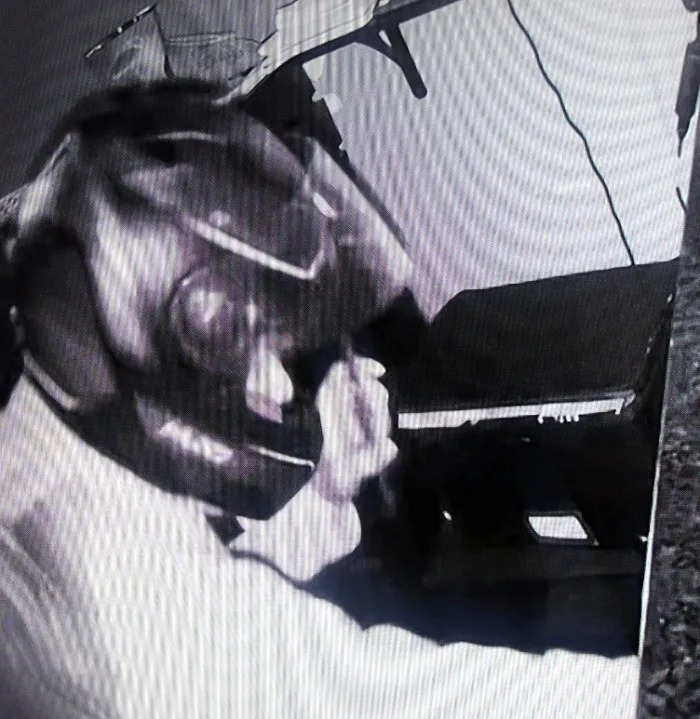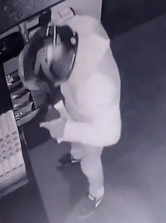 The burglar fled the scene south of the shopping center toward Gateway West. The suspect involved in this case is a male with a thin build. He was wearing a motorcycle helmet, had a jacket, used gloves, and wore athletic shoes.