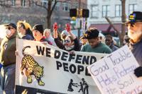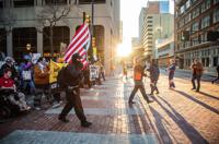 Protesters walk across Sixth Street during a protest against U.S. Immigration and Customs Enforcement on Jan. 10 on Main Street in Fort Worth. The community gathered to protest from 4 to 6 p.m.