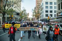 Protesters march during a protest against U.S. Immigration and Customs Enforcement on Jan. 10 on Main Street in Fort Worth. The protest was sparked by the death of Renee Good, who was killed by ICE in Minnesota.